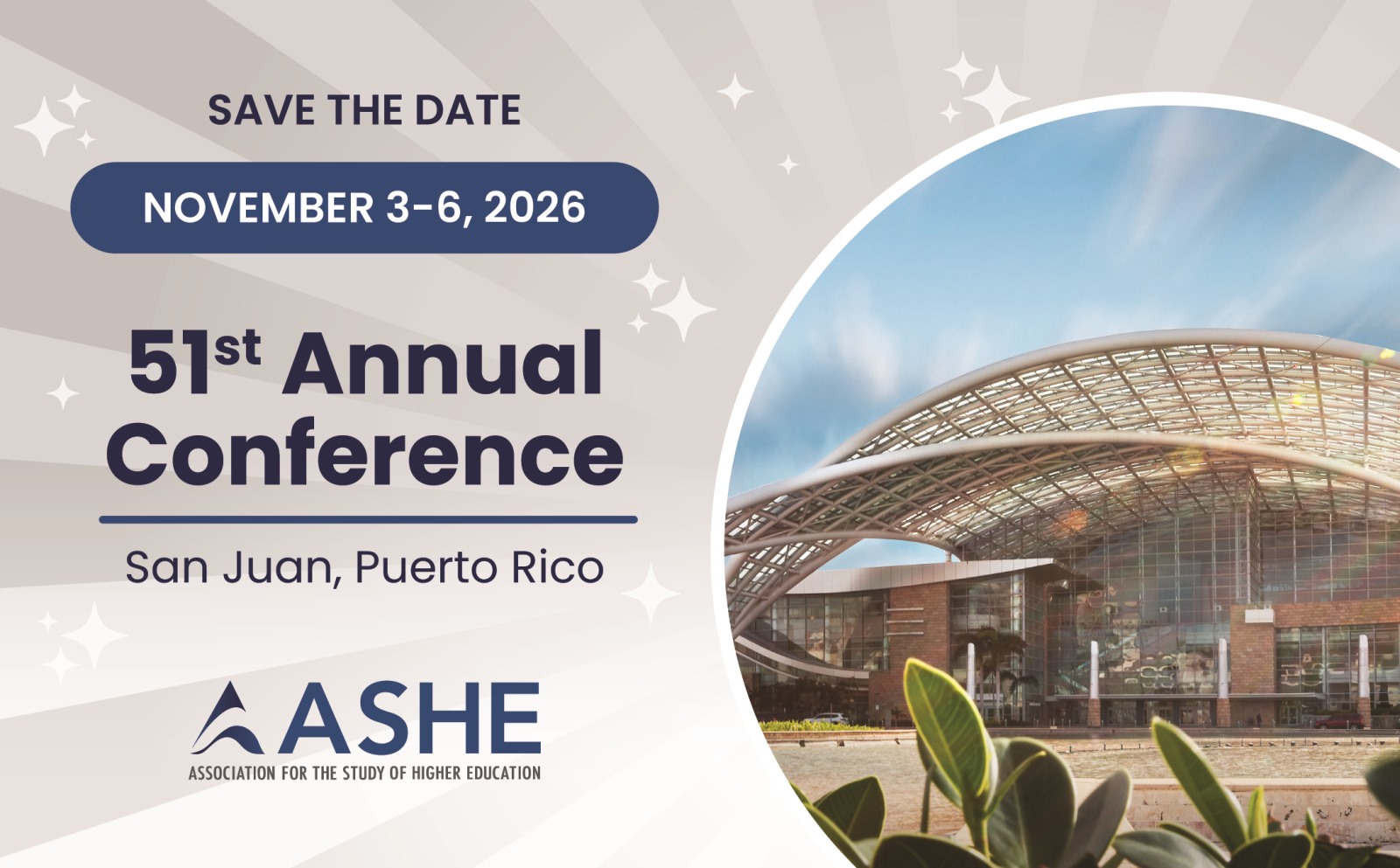 The Association for the Study of Higher Education (ASHE) is a vibrant scholarly community of over 2,000 members dedicated to advancing the study of higher education. Through research, dialogue, and professional development, we strive to foster a deeper understanding of equitable higher education that serves the public good. Our commitment to inclusivity and diversity is reflected in our programs, membership, and the engagement of graduate students and emerging scholars in our activities. Learn more about the association.