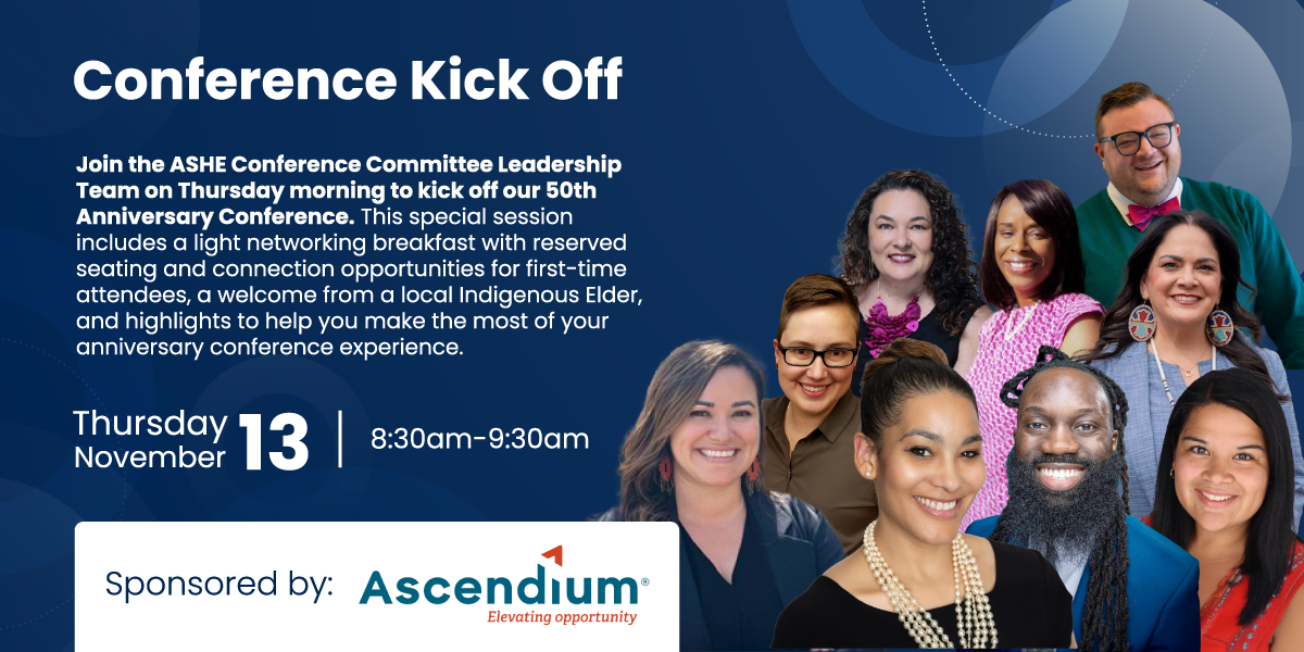 We are excited to share events, programs, and services planned for our 50th Annual Conference. Since August 2024, the 2025 Conference Committee Leadership Team has been hard at work shaping ASHE’s conference to reflect the theme “The Bend in the Arc,” making it more relevant, innovative, and meaningful than ever before. We sincerely thank the 63 members serving on the Conference Committee for their dedication to advancing our community.