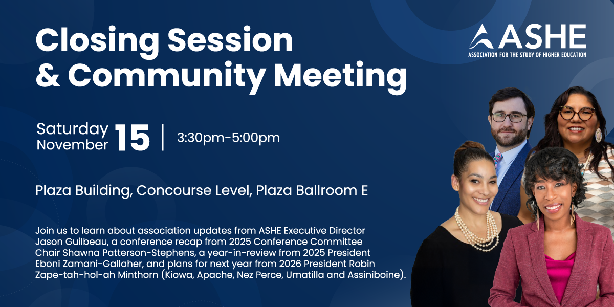To extend the accessibility of the ASHE 2025 General Conference, we will once again offer a Virtual Conference Day on October 30. The Virtual Conference Day will feature scholarly and research presentations submitted through the Call For Proposals. Registration for the Virtual Conference Day is included for all In-Person Conference and Pre-Conference registrants.